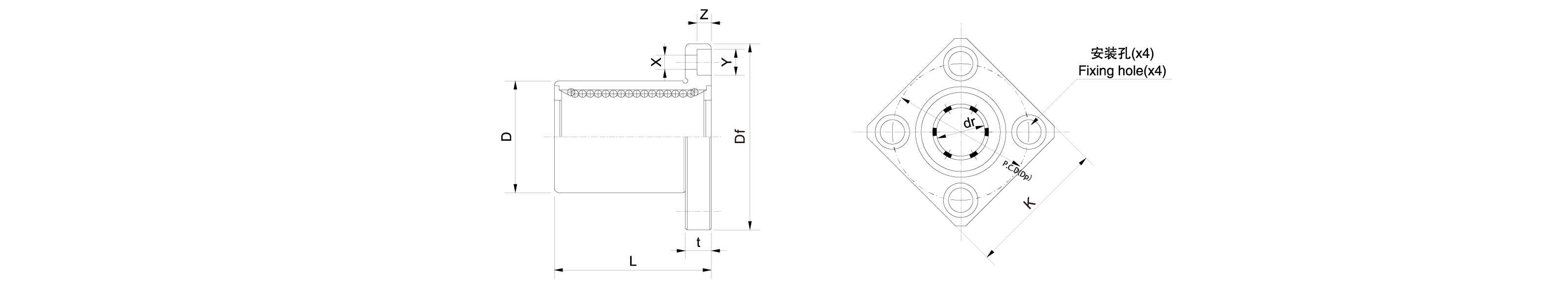 | LMNK8UU | 8 | 13 | 24 | 0/-9 | 0/-13 | ±0.3 | 28 | 23 | 5 | 22 | 3.5×6×3.1 | 8 | 4 | 12 | 12 | 0.235 | 0.277 | 轴承钢 | 树脂 | 轴承钢 | — | 普通级 | 0.022 |