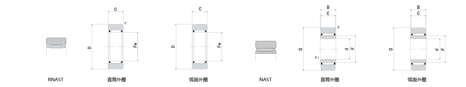 | RNAST30R | 38 | 62 | 19.8 | 1 | +0.041~+0.025 | 30.3 | 45.4 | 6660 | 5500 | 球面 | 不带内圈 | 碳素钢 | 0.255 | |||