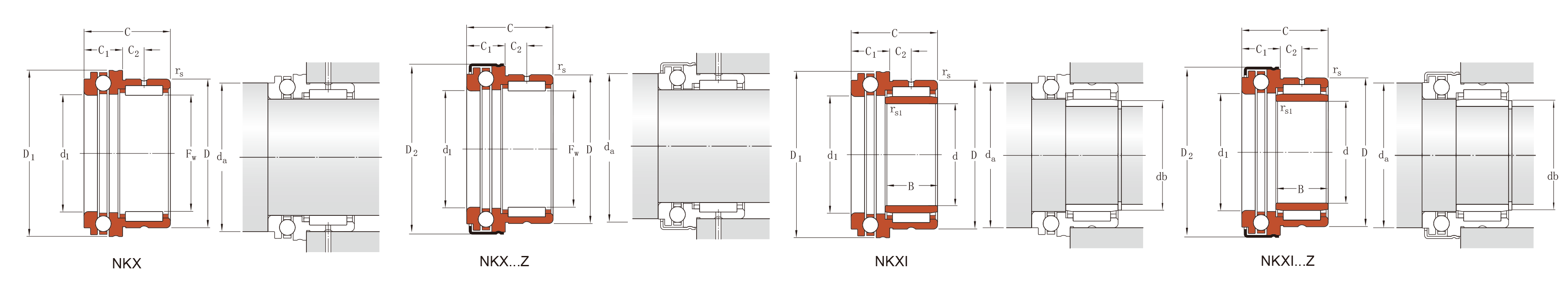| NKX30Z | 30 | 42 | 30 | — | 30 | +0.033~+0.020 | — | 48 | 11 | 9.5 | 0.6 | — | 30 | 25.1 | 20.4 | 40.1 | 42.2 | 6200 | 40 | — | 0.145 | IR253020 | NKXI25Z | 带端盖 |